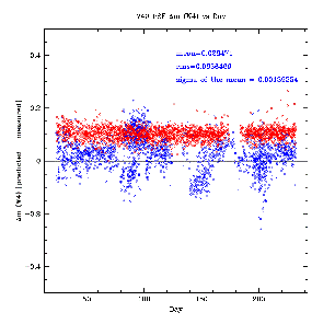 to account for the blue vs. red calibration discrepancy.